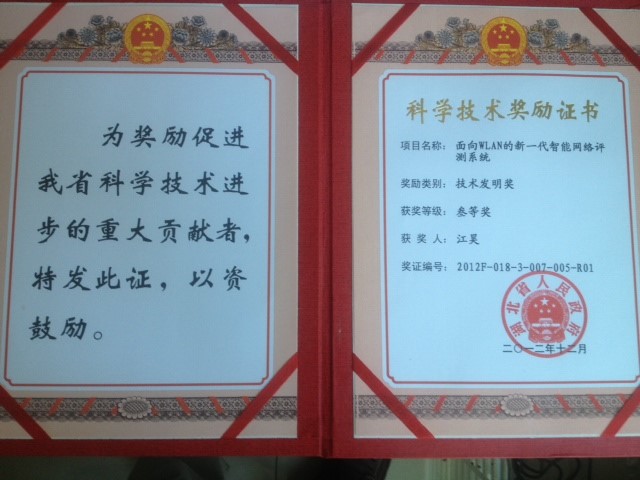 面向WLAN的新一代智能网络评测系统 湖北省技术发明奖 2012