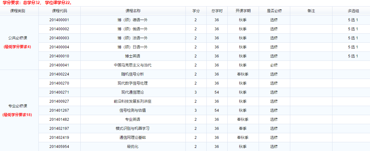 含专业选修课和公共选修课。选修课不局限于本专业博士培养方案,可根据科研需要或导师建议在全校博士或硕士培养方案中选择。