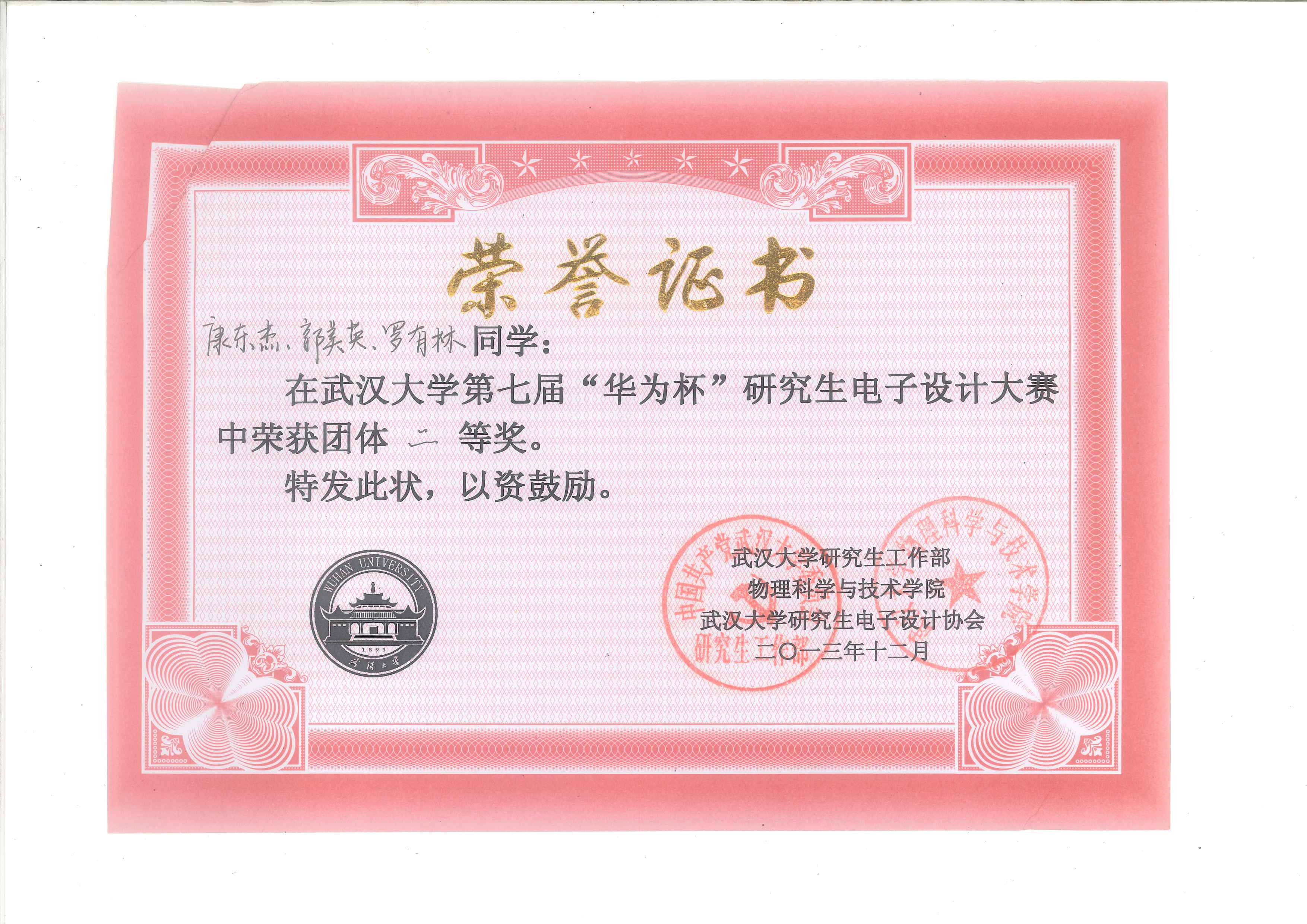 武汉大学第七届“华为杯”研究生电子设计大赛团体二等奖 2013