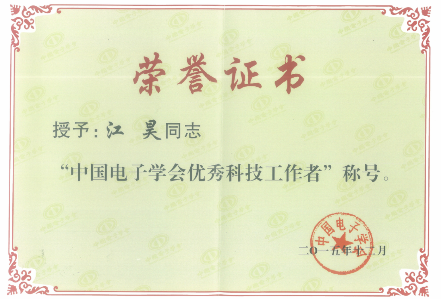 江昊老师 “中国电子学会优秀科技工作者” 2015