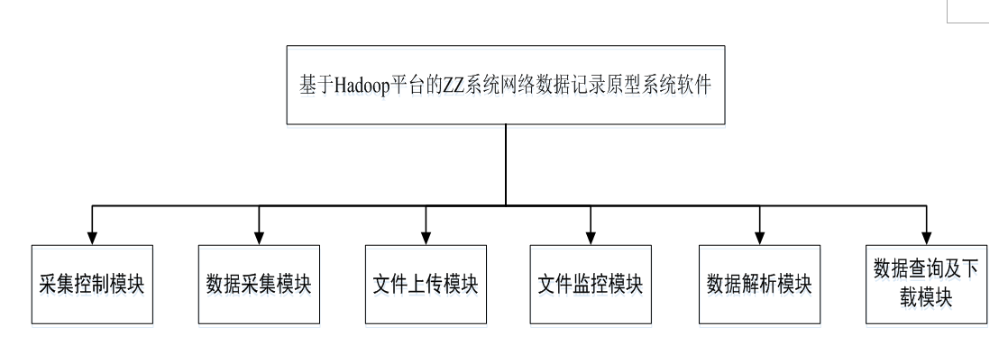 团队与中船重工集团合作,开发出基于Hadoop平台的ZZ系统网络数据记录原型系统软件,以提高其研究室对ZZ系统数据的实时记录与解释、数据大批量处理能力,提高其设备在海量数据读取与存储方面的能力,完善功能。此系统的软件功能如图2所示。
