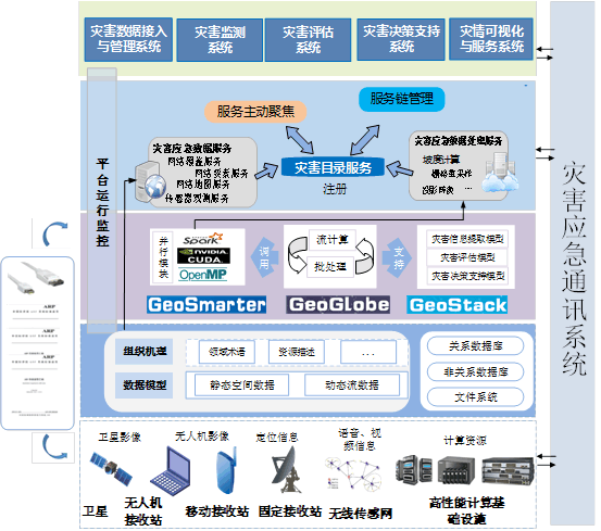 图2 重特大灾害应急监测与空间信息服务集成平台架构图